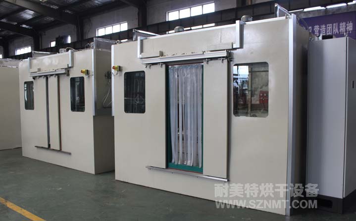 1,物流人員在加熱箱后面把料車推到加熱房里,關上卷簾門開始加熱。